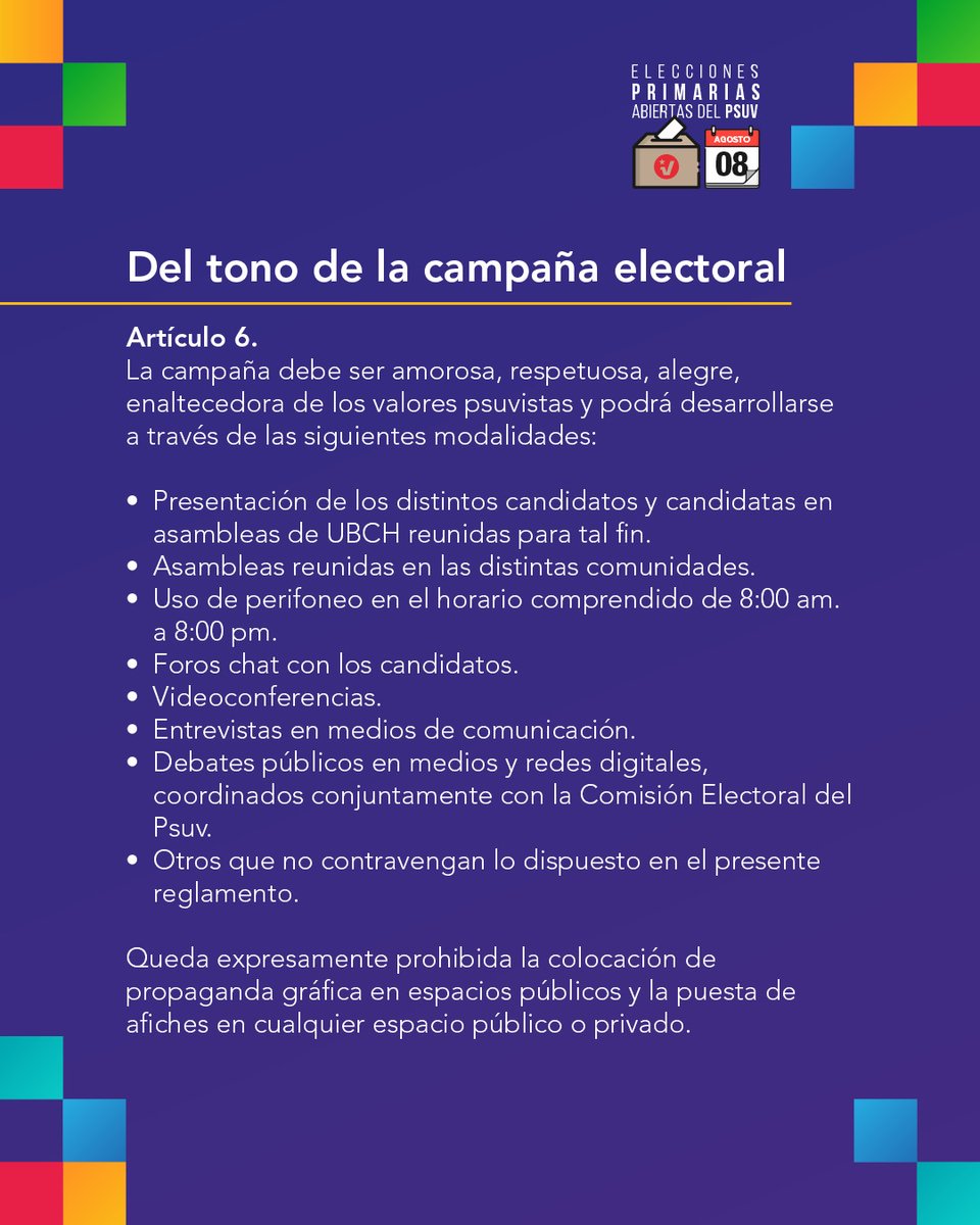Junio 27 2021, 11:00 pm. Jun 27, 2021 · video: Jun 27, 2021 · el partido socialista unido por venezuela, previo a las megaelecciones propuestas por el chavismo, realizará unas elecciones primarias dentro de su militancia, con el fin de "dar oportunidad" al que "sea seleccionado por el pueblo" a los puestos de alcaldías, gobernaciones y otros cargos públicos. Jun 01, 2021 · maduro: Jun 27, 2021 · la segunda fase del proceso, es el 8 de agosto, en donde el psuv realizará elecciones primarias abiertas en las que pueden participar todos los electores y elegir a quienes representarán a la tolda socialista en los comicios del 21 de noviembre, en el que se elegirán alcaldes, gobernadores, representantes del consejo legislativo y concejo.